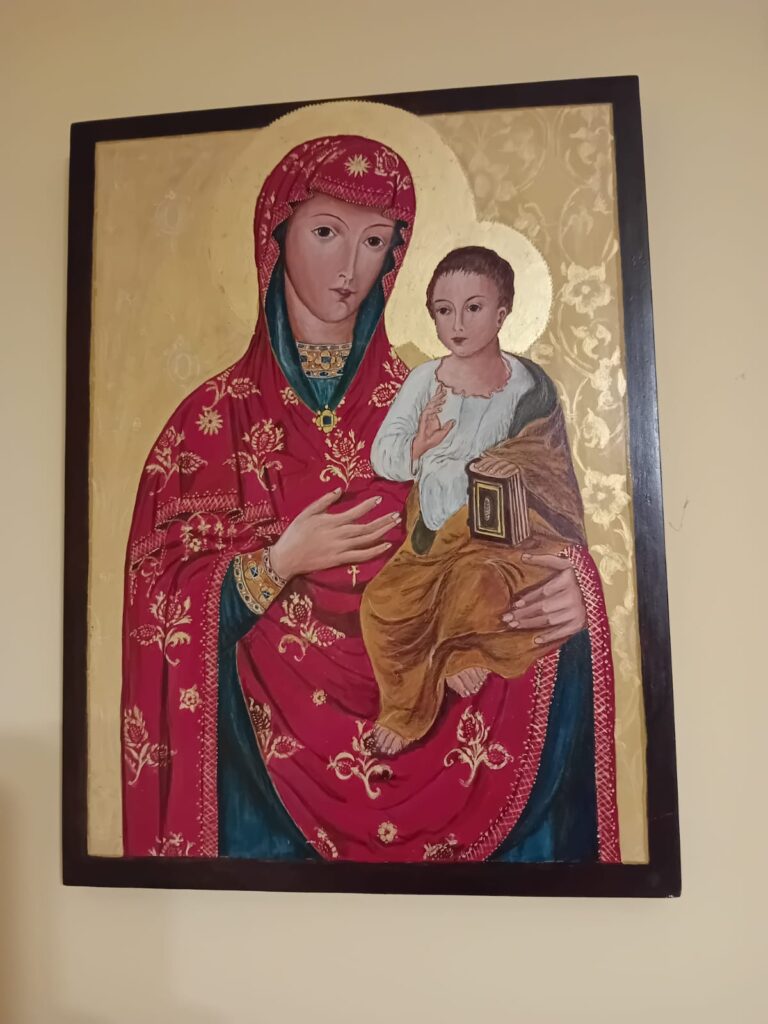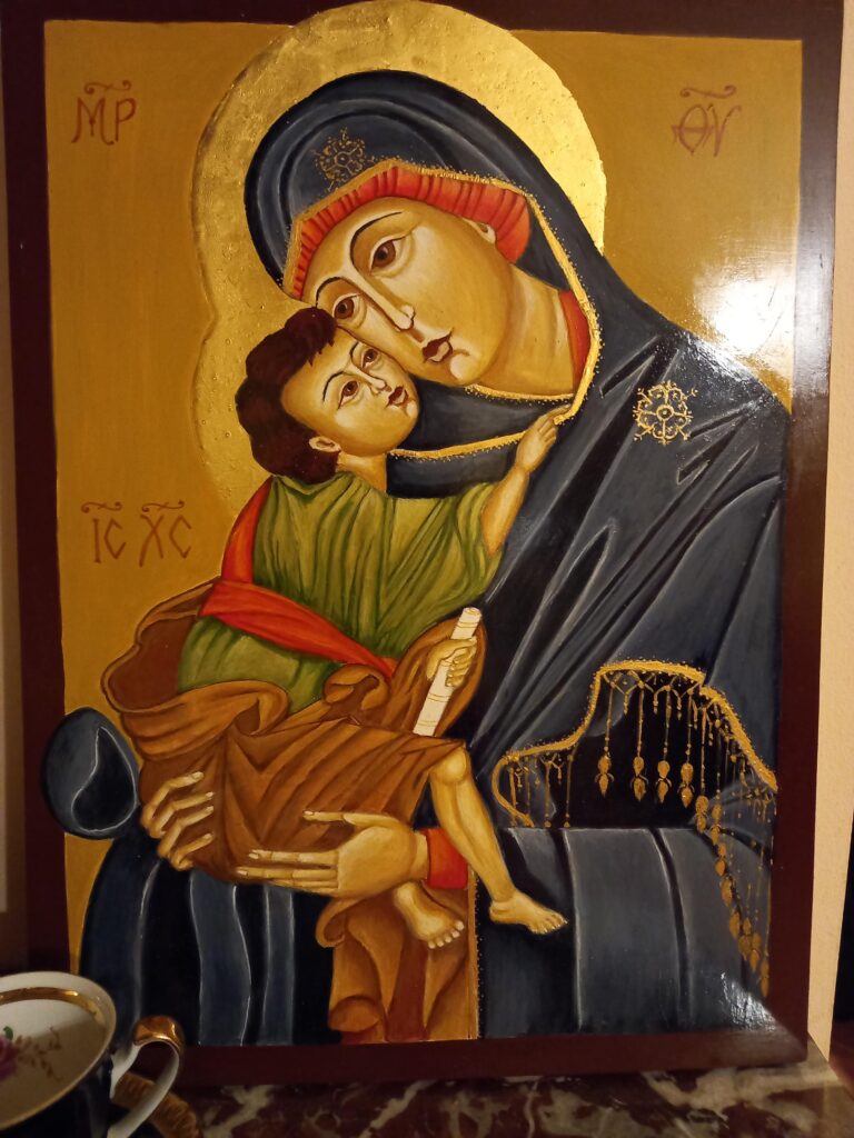 Napisana przeze mnie ikona Matki Boskiej z Dzieciątkiem- obraz dla pokrzepienia złamanego serca.