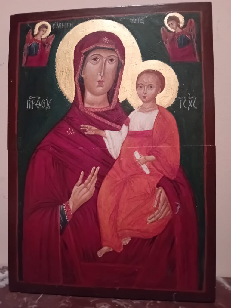 Napisana przeze mnie ikona Matki Boskiej z Dzieciątkiem- obraz dla pokrzepienia złamanego serca.